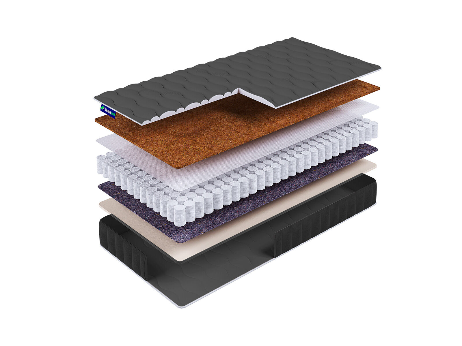 Кокосовая койра придает поверхности матраса жесткость, обладает превосходными ортопедическими и эксплуатационными свойствами.