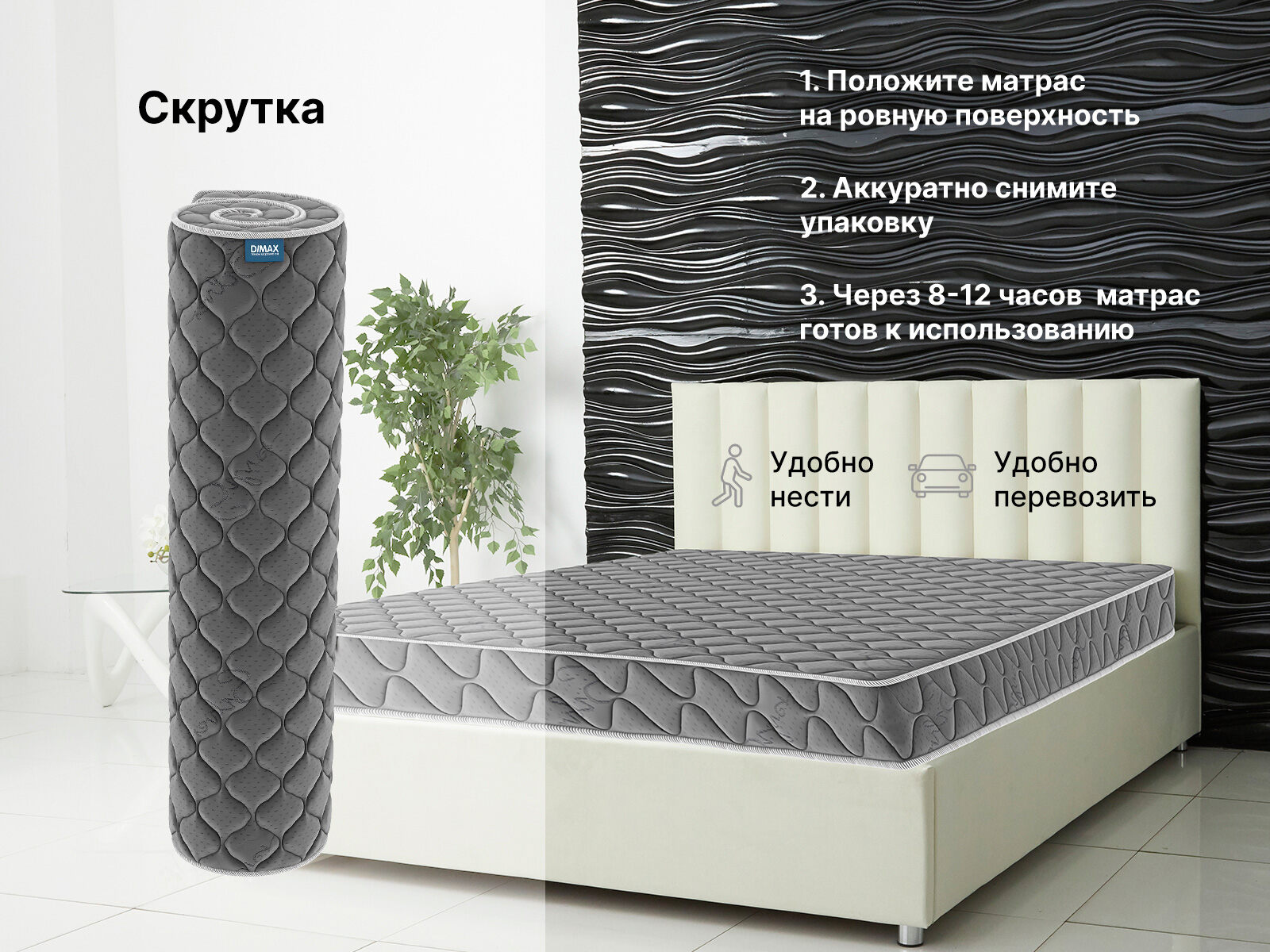 Матрас доставляется в скрученном виде.