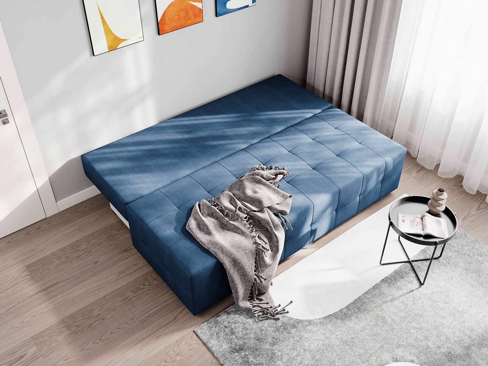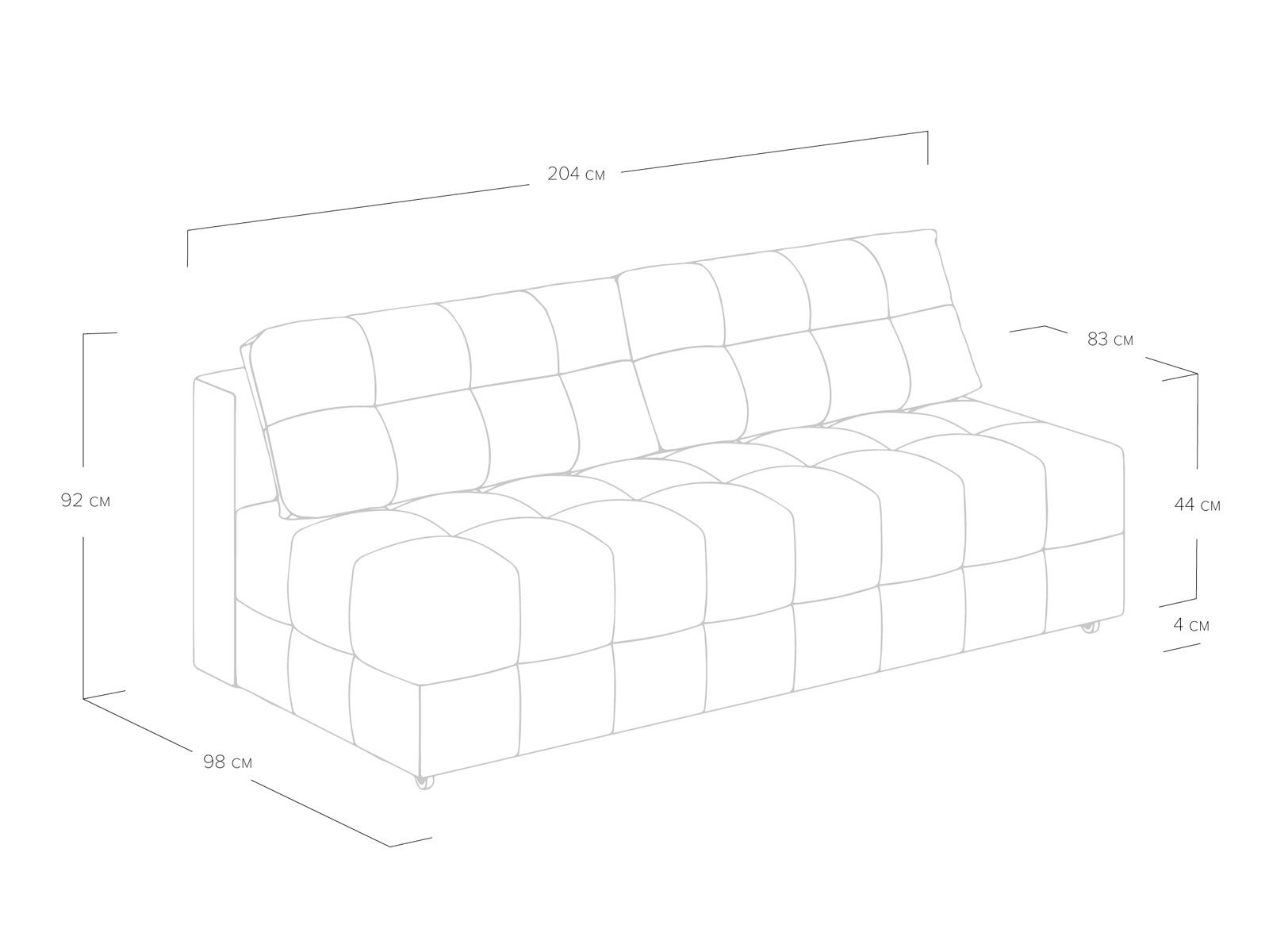 Благодаря объемной стежке в форме квадратов, отсутствию подлокотников и минимальным габаритам диван подойдет для активного городского жителя. Матрас анатомический с независимым пружинным блоком обеспечит комфортное спальное место.