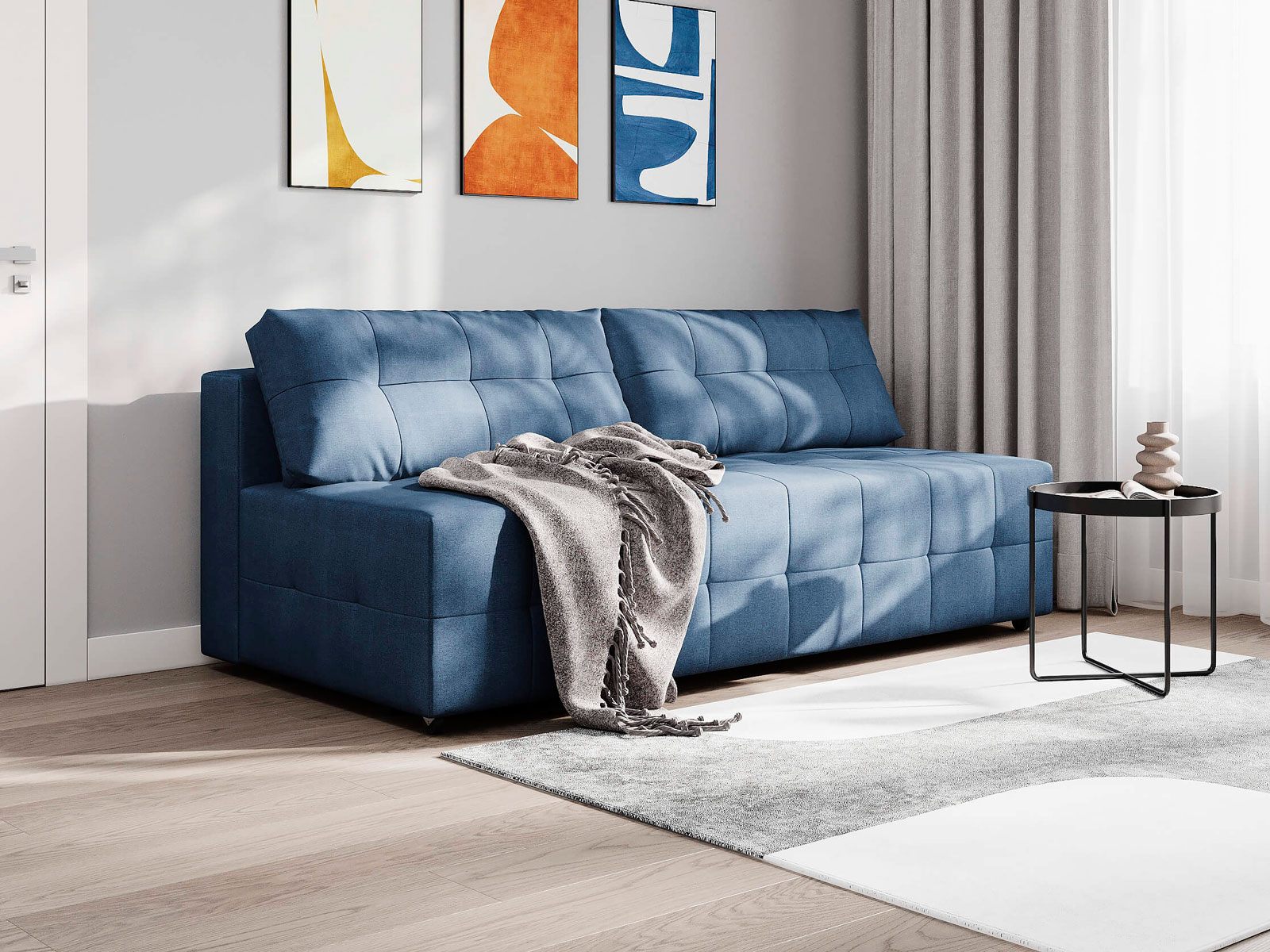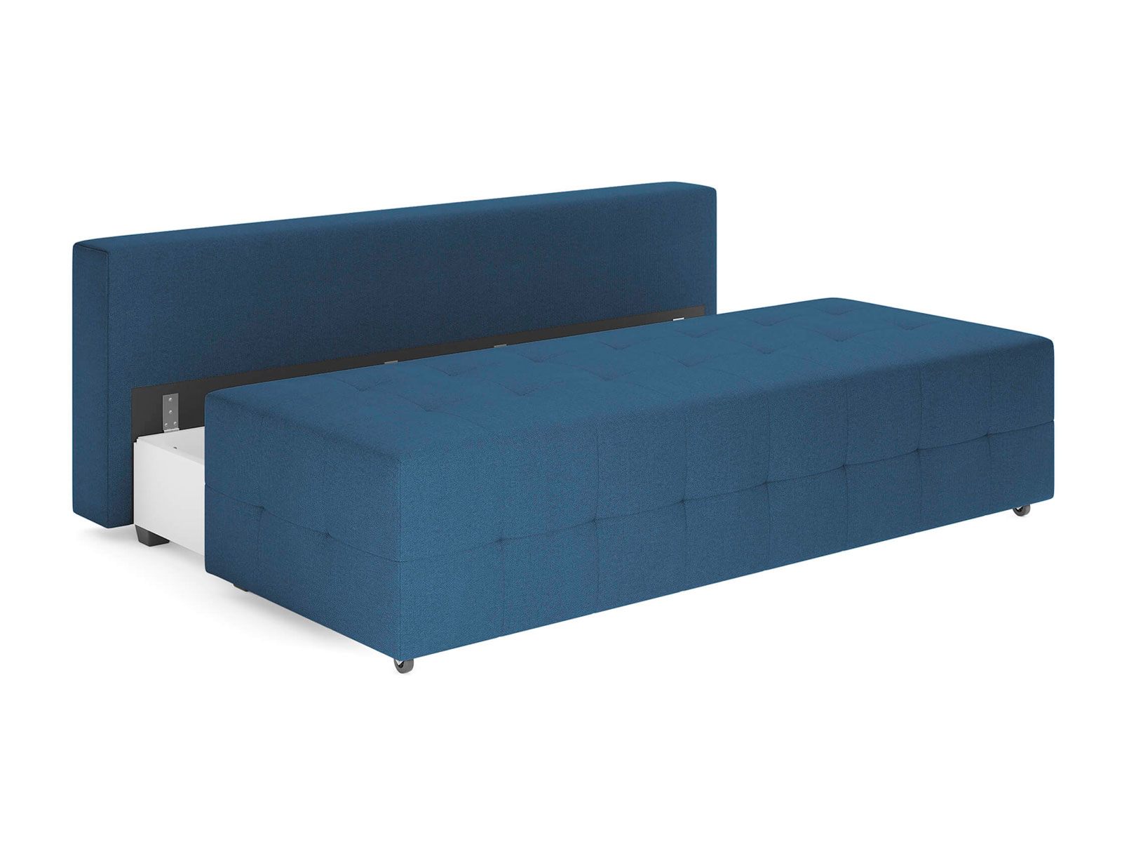 Диван для сна в современном стиле без подлокотников с механизмом трансформации еврокнижка и коробом для хранения.