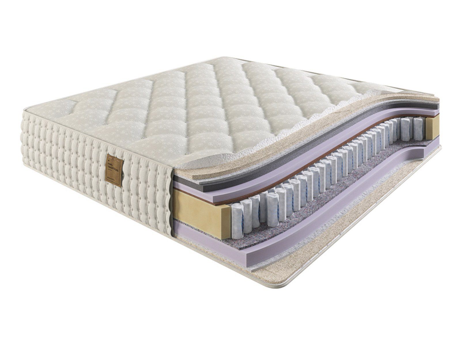 Коллекция King Traditions отличается невероятным качеством и роскошными материалами. В составе используются как современные, так и традиционные наполнители: натуральный латекс, конский волос, шерсть, холкон и эластичный материал.