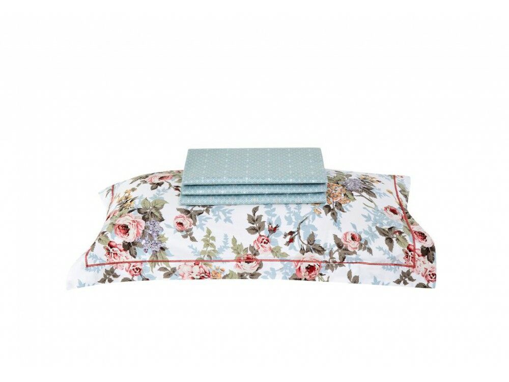 Комплект из одеяла ("одеяло-комфортер" - используется вместо пододеяльника), простыни и наволочек из печатного сатина.