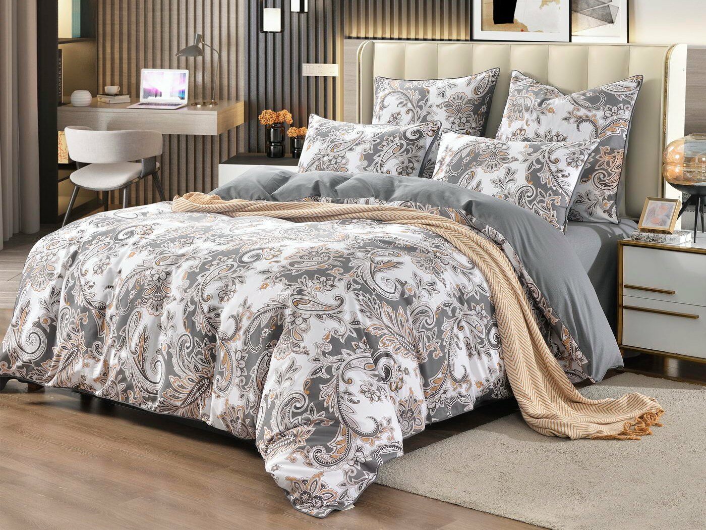 Альфонсо — идеальный выбор для тех, кто одинаково ценит комфорт, эстетику и практичность. В составе — Хлопок 100%, поэтому у постельного белья исключительная износостойкость. Даже после многочисленных стирок оно сохранит первозданный цвет, прочность, мягкость и гладкую фактуру. Благодаря отличной воздухопроницаемости материал обеспечивает прохладу летом, а зимой согревает, плюс дарит приятные тактильные ощущения и здоровый сон. Сатин — еще и удивительно красивая ткань, КПБ из нее украсит интерьер спальни, сделает ее по-настоящему уютным местом для полноценного отдыха. К тому же у дизайнеров этот материал всегда в тренде, поэтому с такой покупкой вы точно не прогадаете.