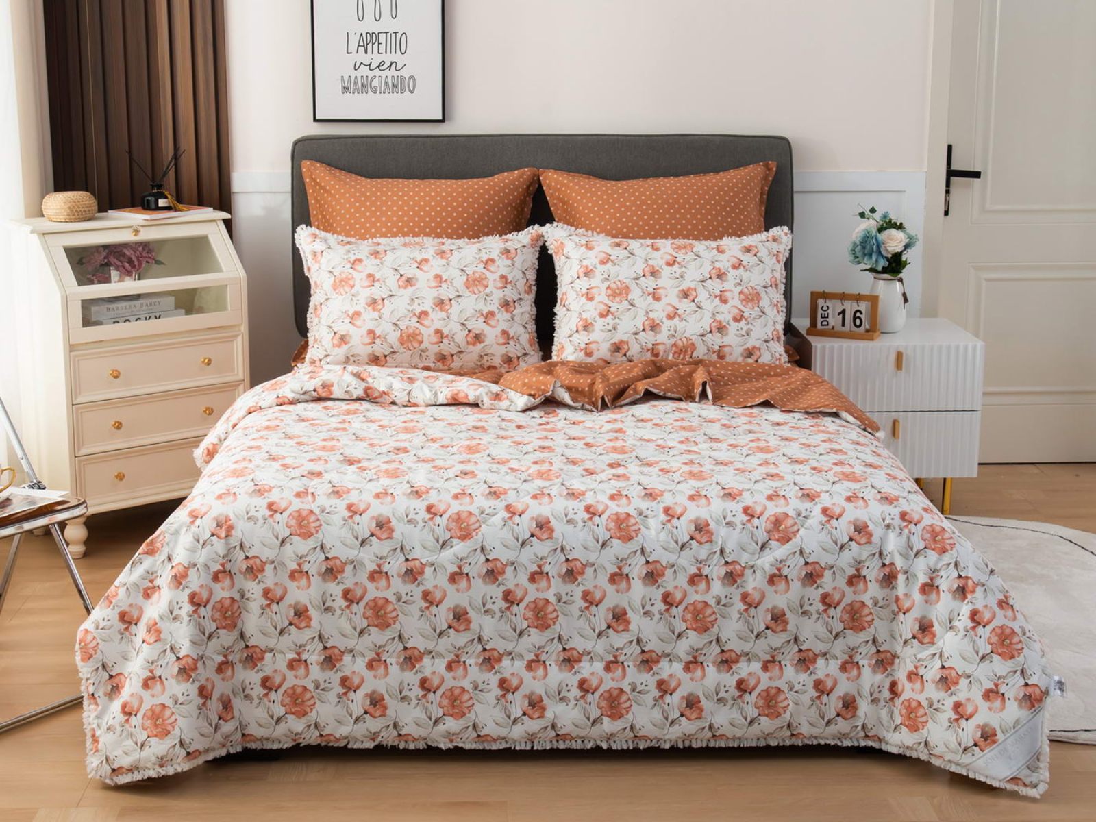 В комплекты комфортеров с одеялом Бернадетт входят наволочки, простыня и легкое всесезонное одеяло. Оцените это современное и очень удобное решение, которое идеально подходит тем, кто не любит возиться с пододеяльниками.