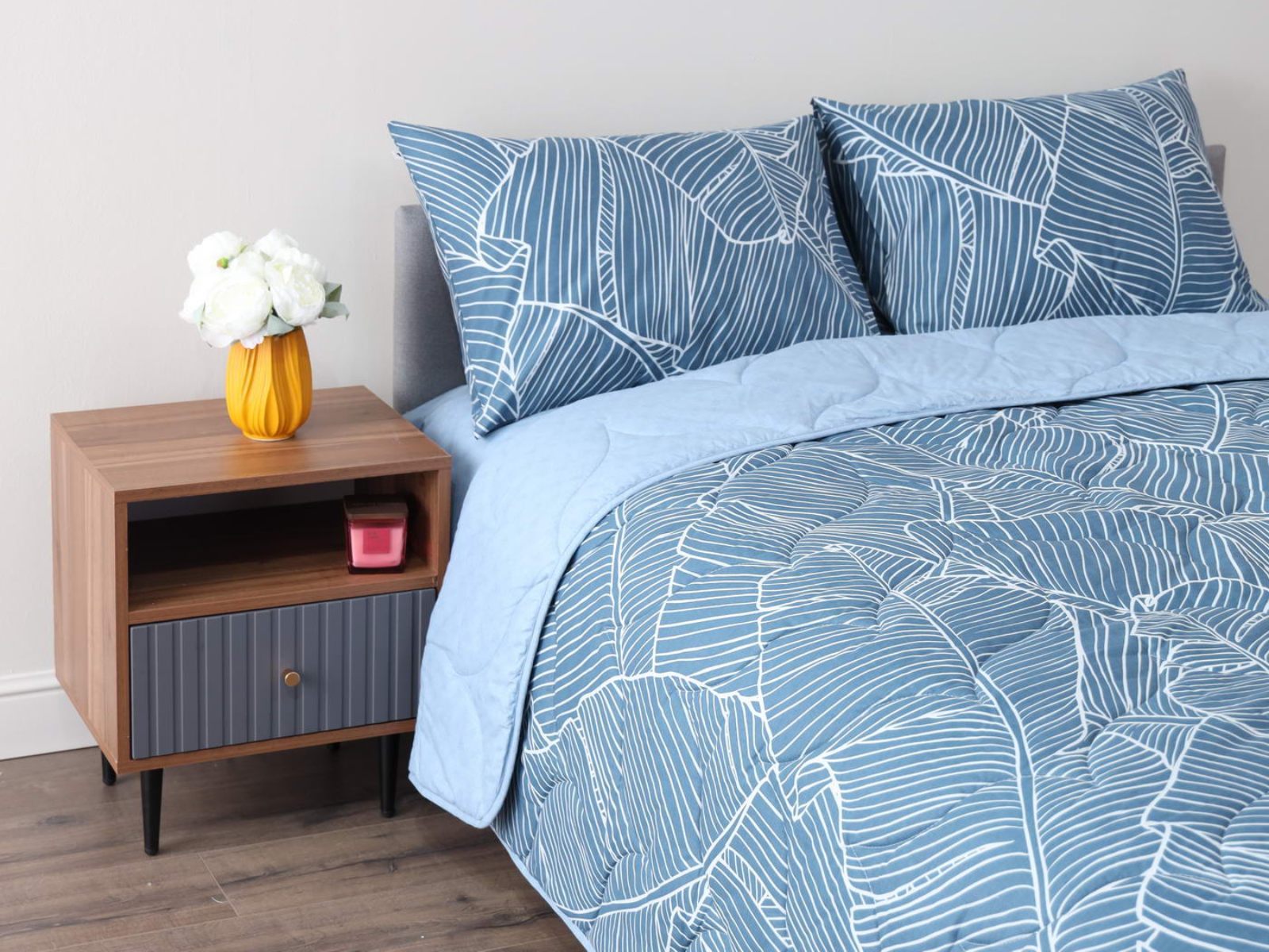 Комплект Мелвин легко стирается в обычной машине в бережном режиме и также легко гладится.