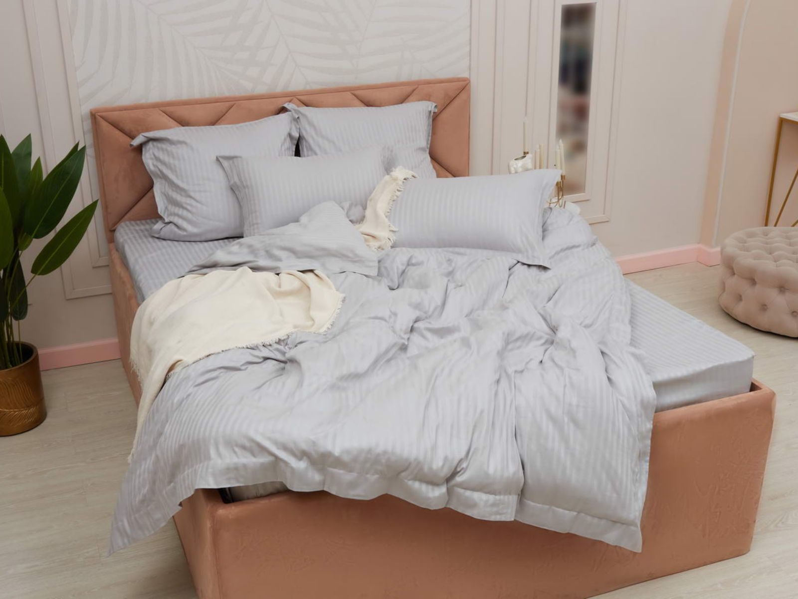 Постельное белье Моне, изготовленное из высококачественного страйп-сатина, станет украшением Вашей спальни. Комплекты представлены в 17 оттенках: от пастельных, до ярких насыщенных тонов. Такая палитра никого не оставит равнодушным. Особое плетение ткани образует узор в виде чередующихся полос, это придает постельному белью изысканность, гладкость и блеск.
