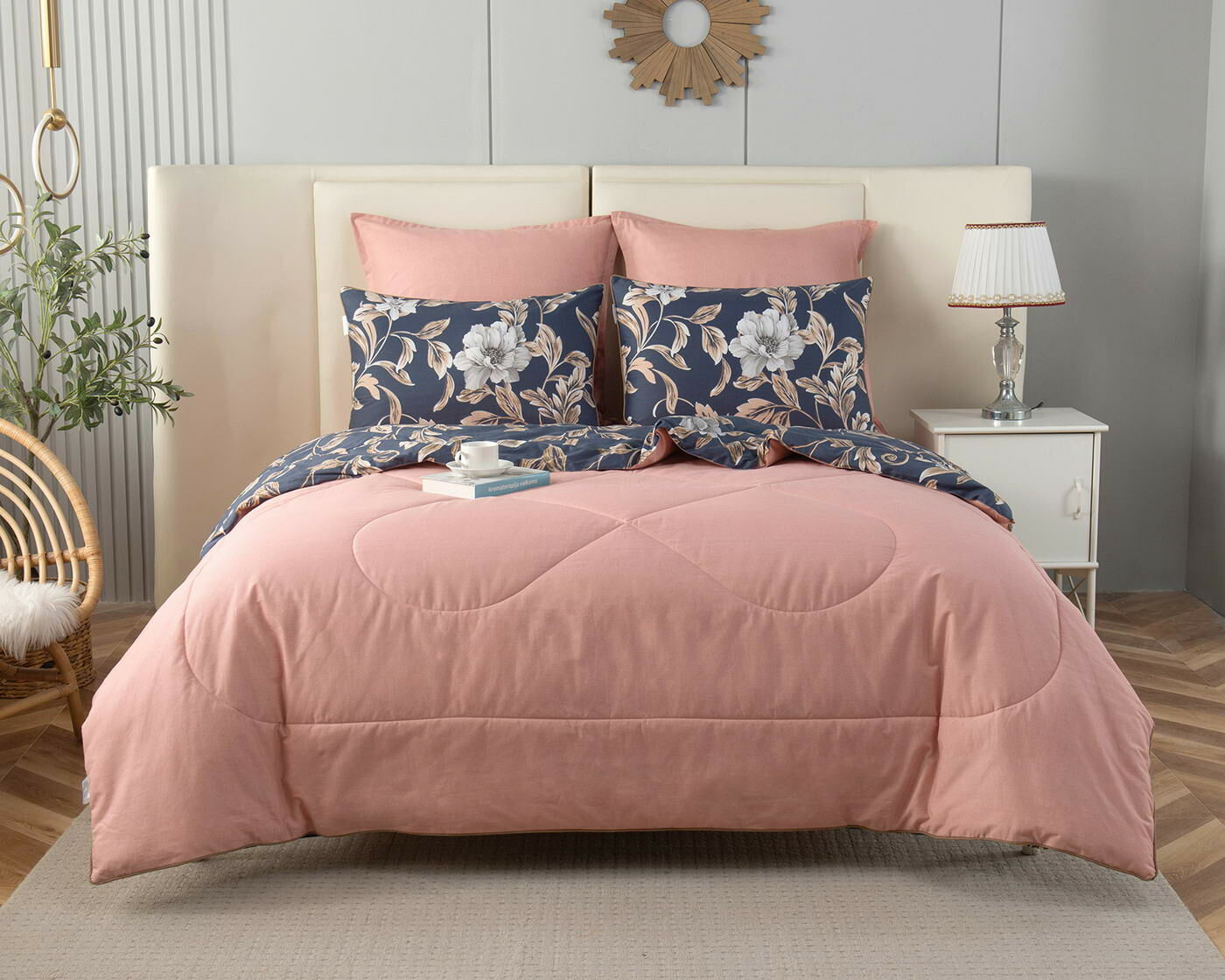 Особенность: двусторонняя модель, наволочки и одеяла декорированы кантом.