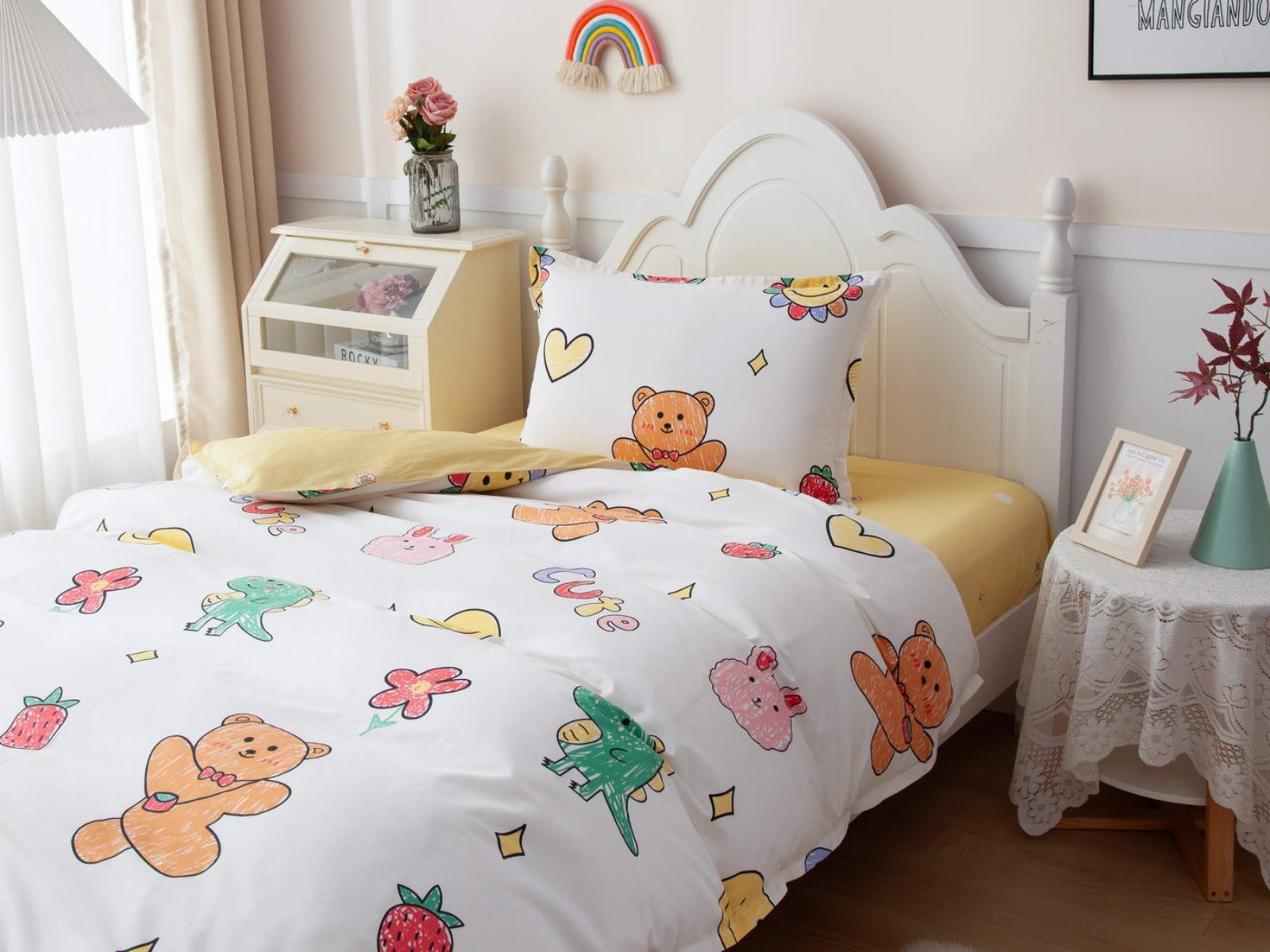 Комплекты выполнены из 100% хлопка, он гарантирует качественный сон, т.к. натуральная ткань хорошо впитывает влагу и позволяет коже дышать. Натуральные материалы не вызывают аллергии. Огромная палитра оттенков и яркие дизайны комплектов понравятся детям и подросткам.
