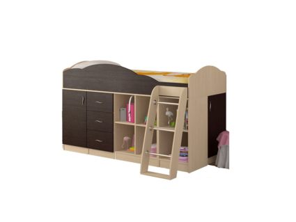 Кровать-чердак Дюймовочка-5.4 представляет собой комбинированный комплекс для детей с компактной системой хранения. Полноценные рабочий стол, просторное спальное место подойдет и для ребенка и подростка.