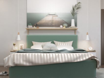 В стандартном исполнении задняя часть изголовья (спинка) выполнена в технической ткани и по желанию может быть выполнена в основной ткани (дополнительная платная опция).