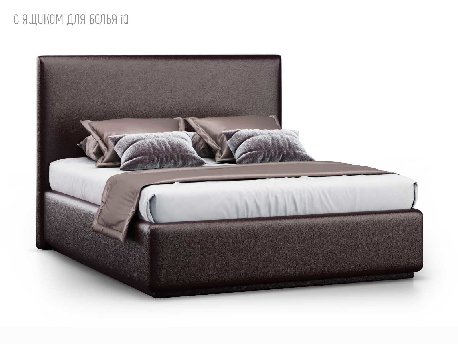Кровать укомплектована IQ с подъемным механизмом и ящиком для белья без дна (дополнительная платная опция - дно к ящику IQ из HDF (ХДФ). Каркас кровати на цоколе, декоративный чехол на цоколе съёмный. Глубина ящика для белья - 30 см, без ограничения нагрузки на ящик.