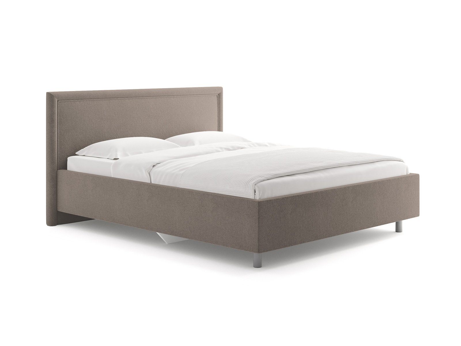 Элегантная интерьерная кровать с мягким изголовьем. Модель изготовлена из ДСП. Обратная сторона изголовья обита спандбондом, но её можно выполнить из основного обивочного материала. При необходимости кровать может быть укомплектована подъемным механизмом с бельевым ящиком или трансформируемым основанием Aquarius (размером 160-200).