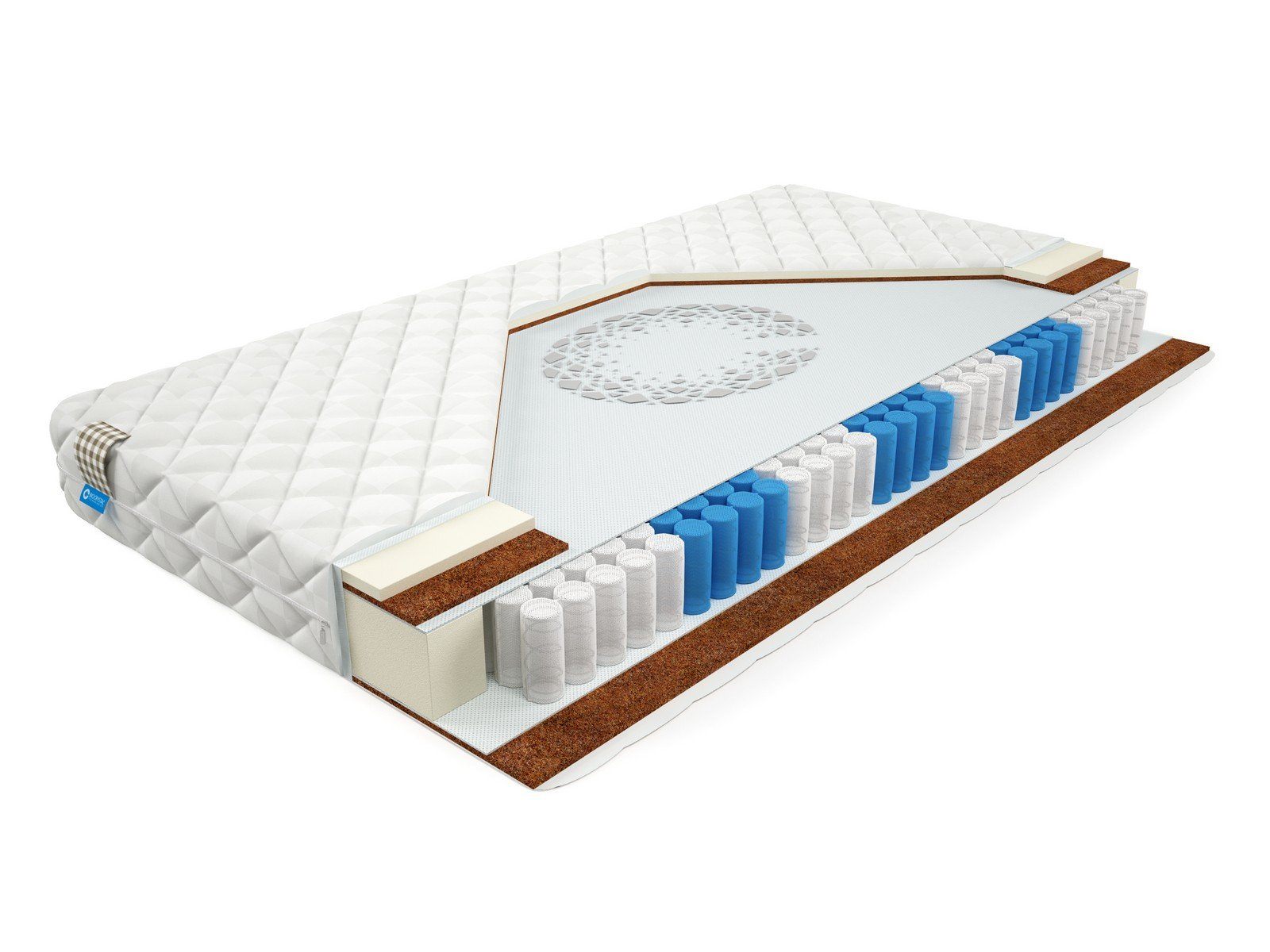 Кокосовое волокно получают, отделяя очес от кокосовой скорлупы. Из волокна изготавливаются маты, которые могут быть обработаны и латексом, и клеем либо полиэфирами, получая различные степени жесткости и эластичности. Маты могут быть также изготовлены иглопробивным способом для повышения вентилируемости и изоляции от шумов. Кокосовое волокно - стойкий, эластичный и одновременно прочный материал, используемый в матрасах, производимых нашей мастерской. Оно практически не портится. Волокно поддерживает оптимальную температуру и обладает звуковым и волновым поглощением..