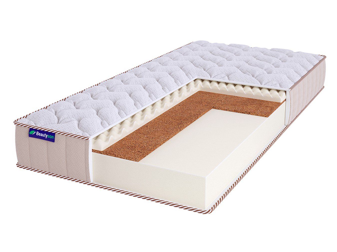 Наполнители – ортопедическая пена AirFoam, кокос и массажный слой. Ортопена даёт комфортную и правильную поддержку для всего корпуса спящего, а кокос усиливает ортопедический эффект. Массажный слой обеспечивает приятное воздействие на тело.