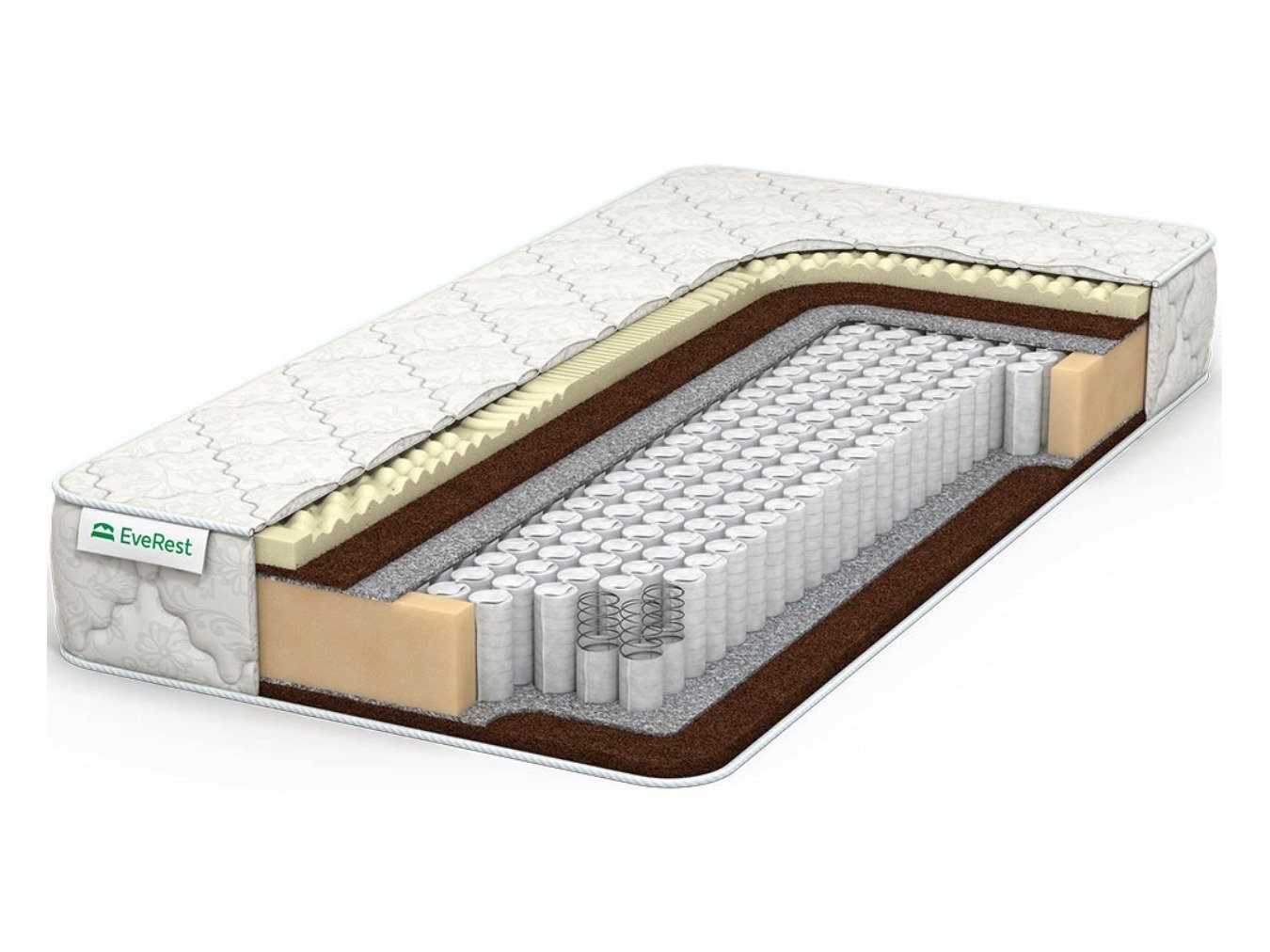 EveRest кокос латекс хард ТФК – модель с разной жёсткостью сторон. Если одна половина матраса здесь имеет высокую твёрдость, то вторая напротив – мягкая. Такое изделие позволяет выбрать наиболее подходящий вариант комфортного сна, а также даёт возможность соблюдать сезонность.