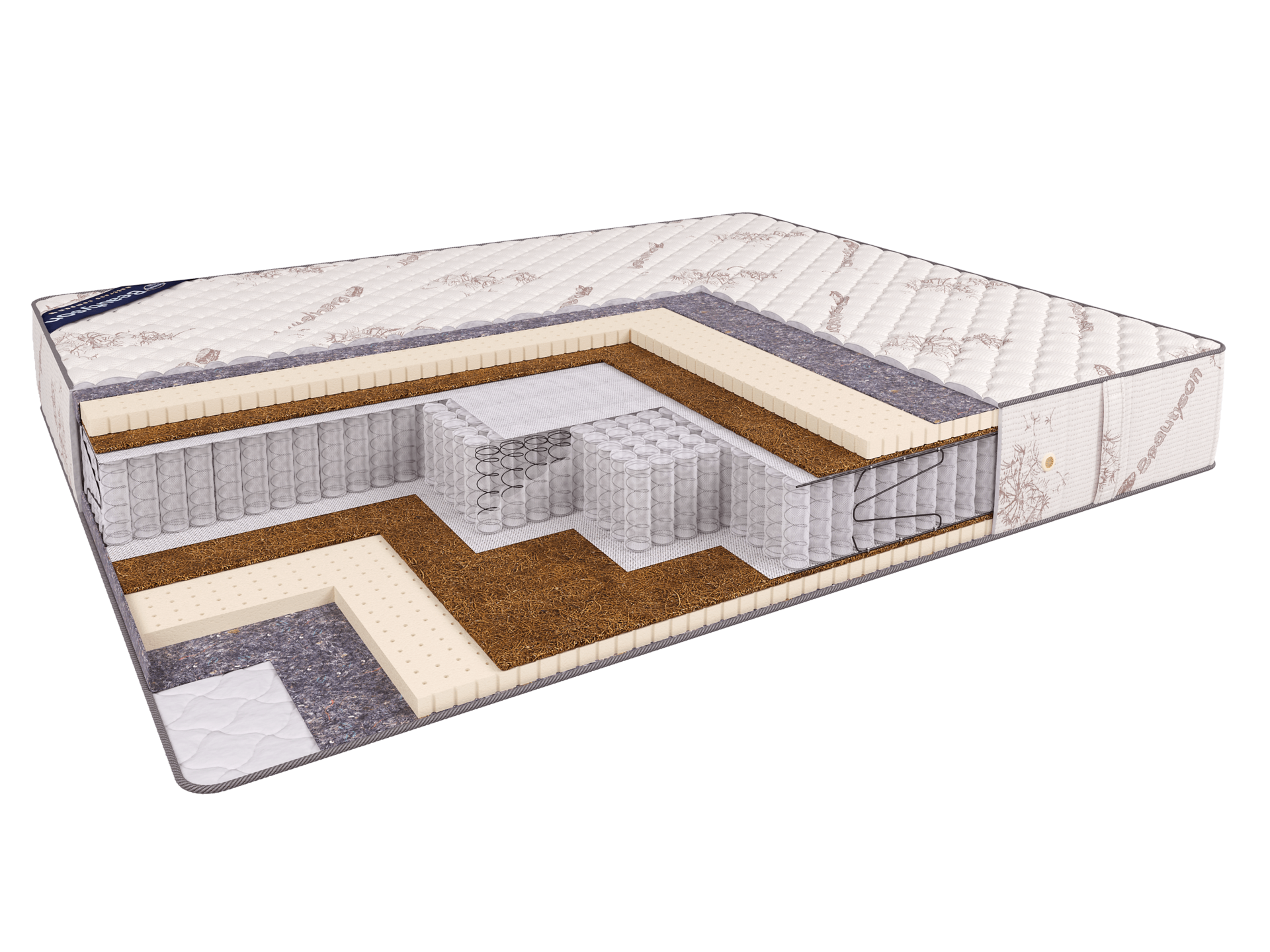 Матрас Мультипакет Престиж выполнен на основе пружинного блока "Мультипакет", обеспечивающего комфортную анатомическую поддержку телу спящего, натурального латекса и кокосовой койры. Данный матрас имеет симметричную конструкцию и обладает одинаковой средней жёсткостью обеих сторон. Слои кокосовой койры придают матрасу оптимальную жёсткость, а благодаря уникальным адаптационным свойствам природного латекса поверхность матраса идеально подстраивается под тело спящего, обеспечивая непревзойдённый комфорт во время сна.