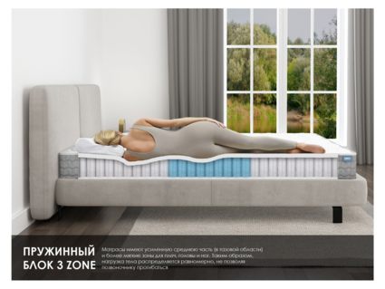 Матрас сочетает продуманную зонированную поддержку пружин, гипоаллергенные материалы и комфортную обивку.