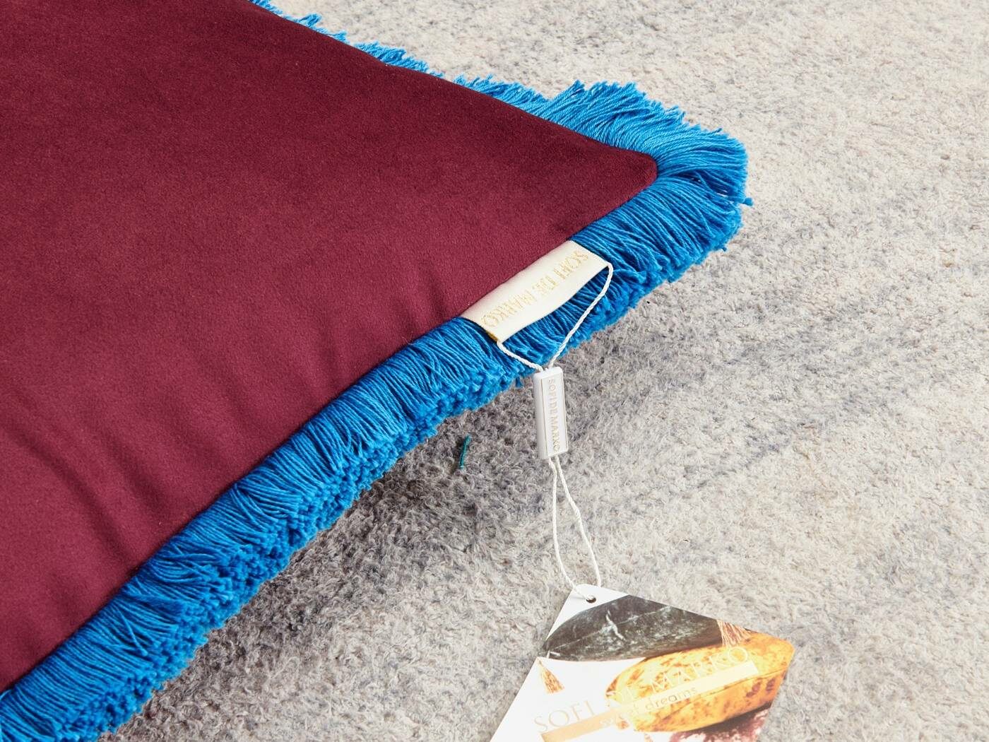 Особенность : с бахромой, потайная молния под цвет вшита в край наволочки.
