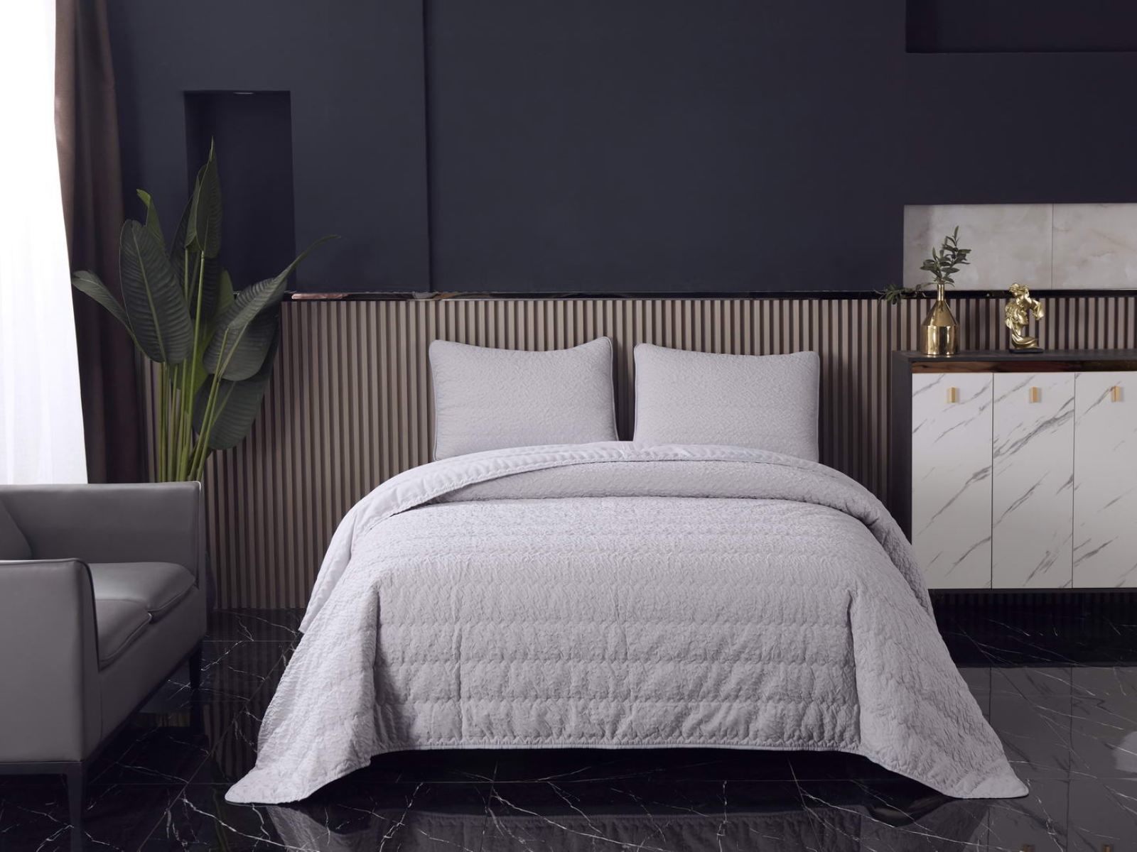 Стеганые покрывала Надин имеют интересную «жатую» структуру, благодаря которой они выглядят живо и оригинально. Они украсят любое помещение.