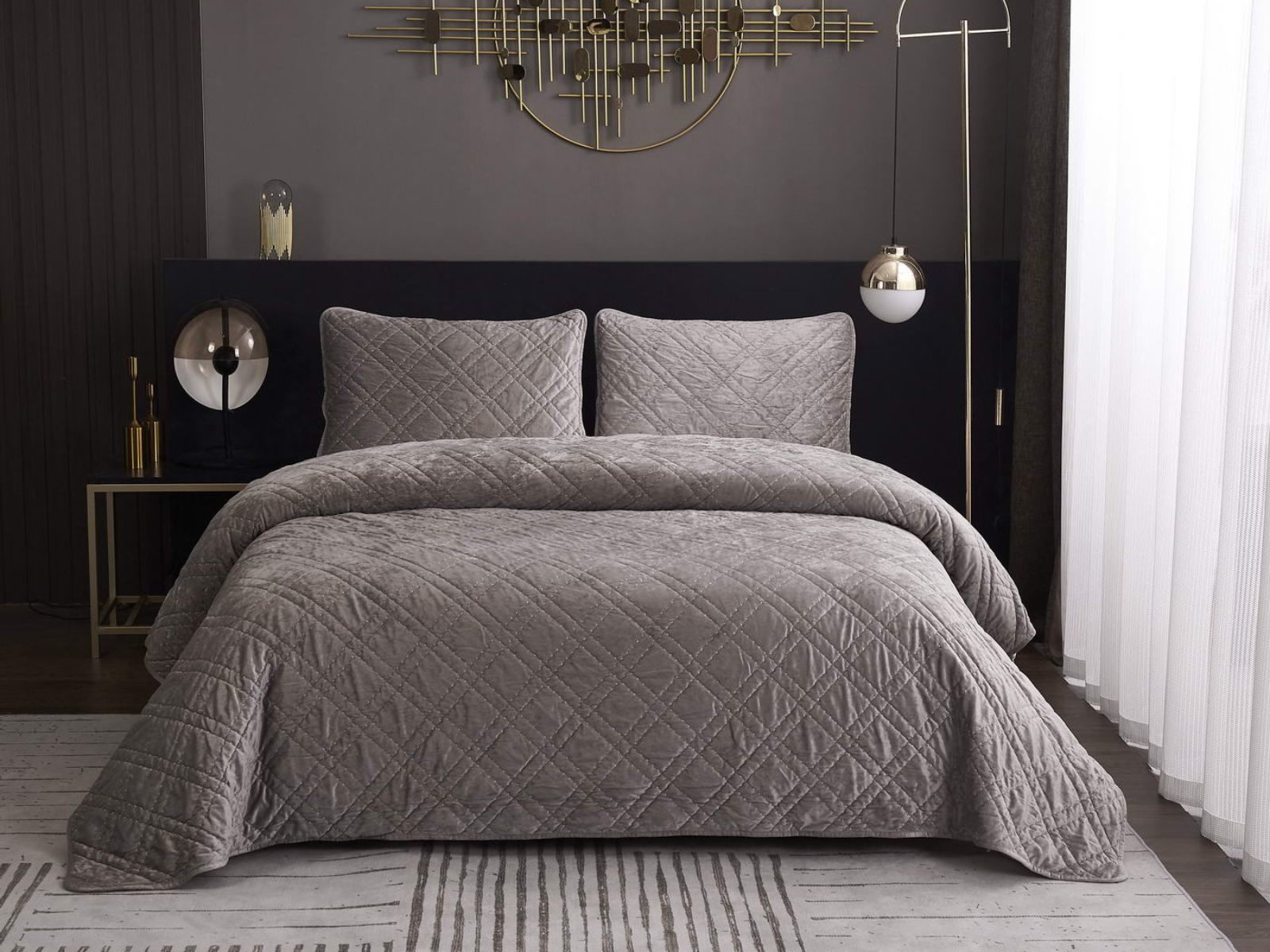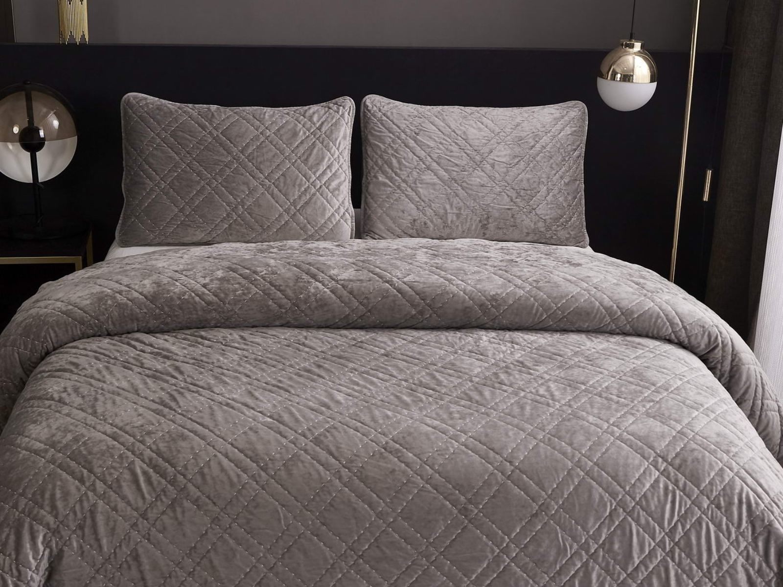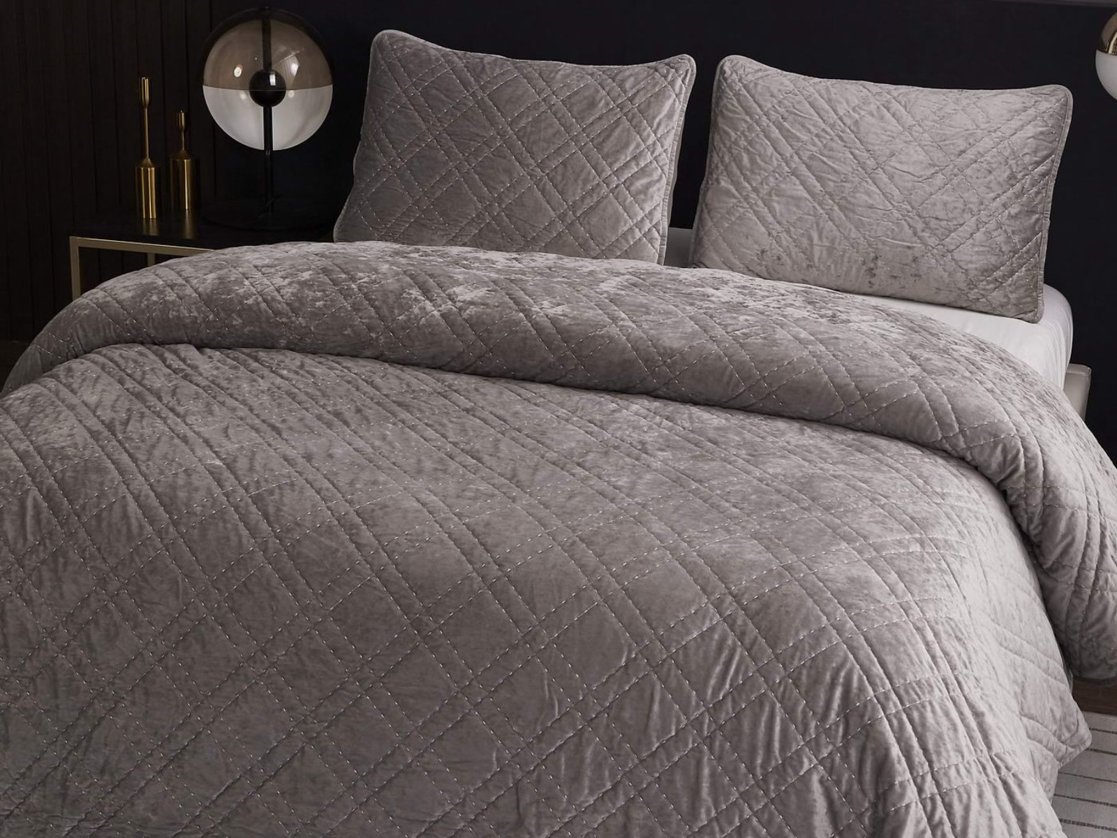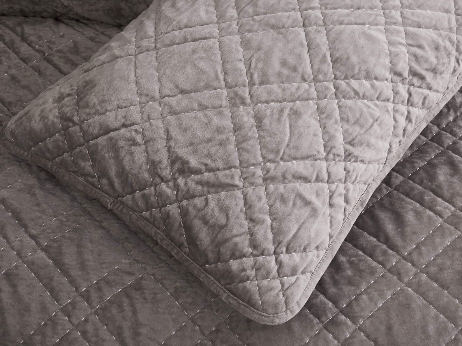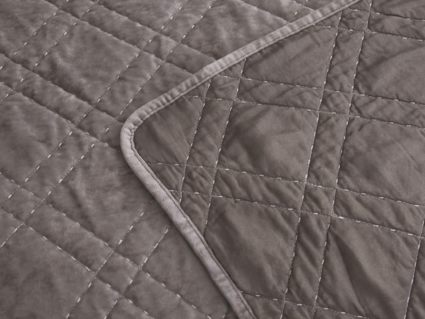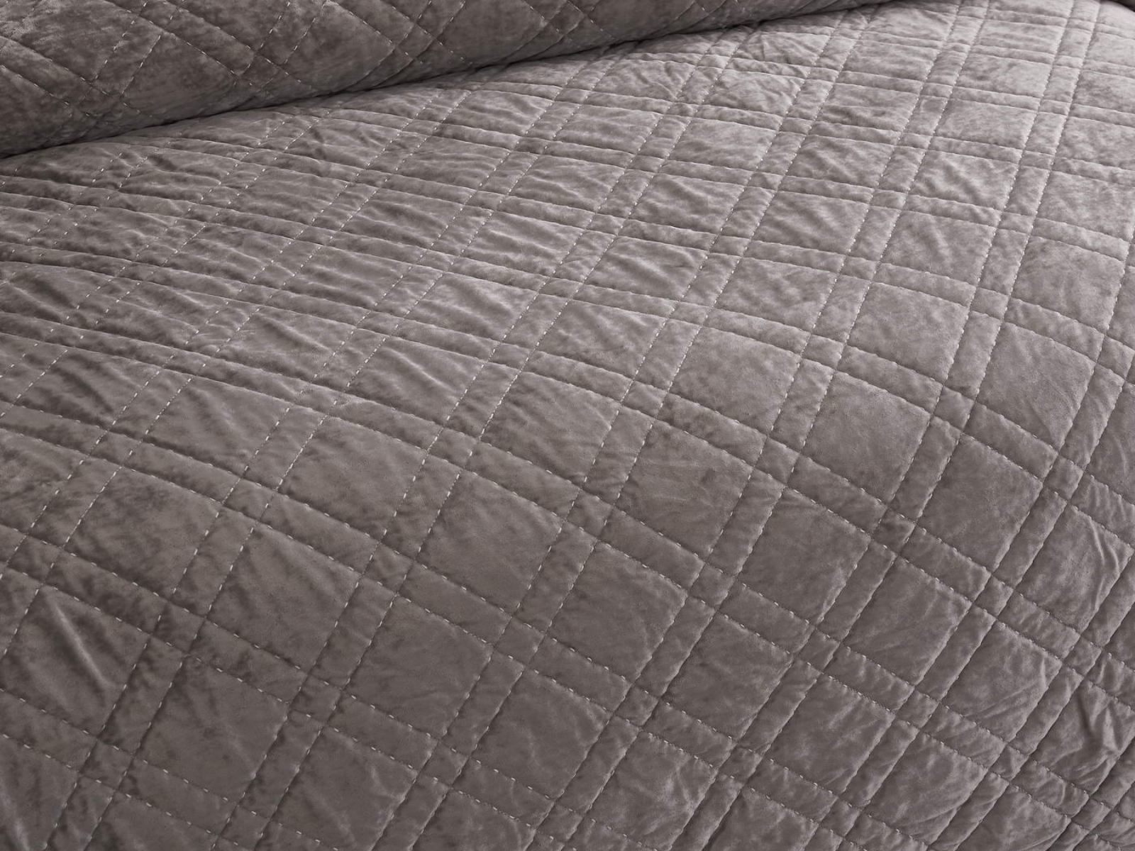 Покрывало Селена выполнено в девяти оттенках: пудра, антрацит, беж, изумруд, капучино, пепел роза, серебро, стоун, терракот. Они подойдут практически для любого интерьера, от классического, до модерна или романтического. Стеганое бархатное покрывало будет необыкновенно смотреться на вашей постели. В комплект входят покрывало и одна либо две наволочки (50х70 см) из аналогичного материала в зависимости от размера.
