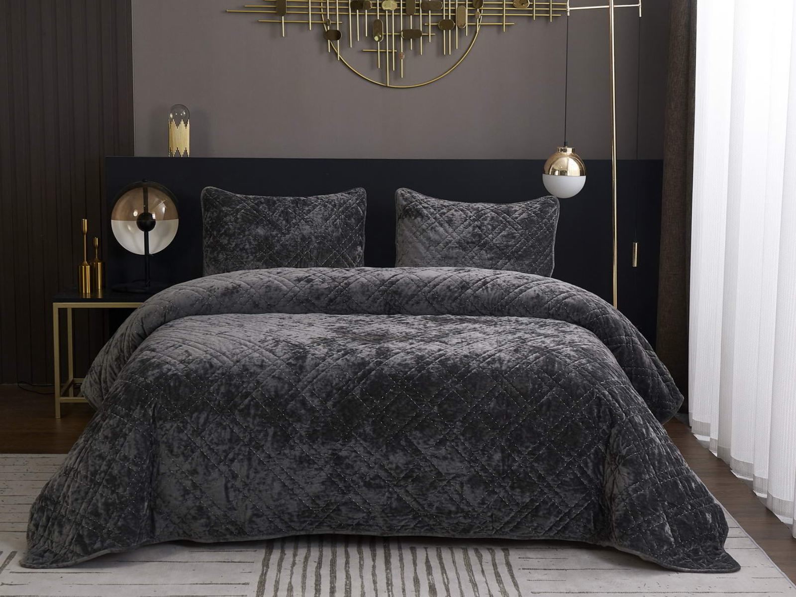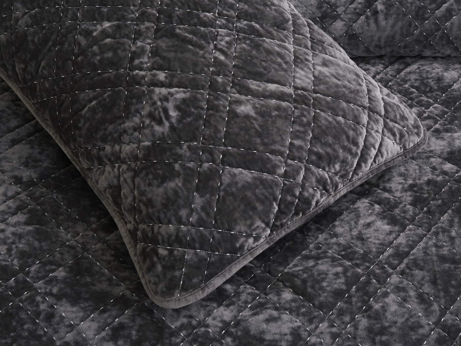 Покрывало Селена выполнено в девяти оттенках: пудра, антрацит, беж, изумруд, капучино, пепел роза, серебро, стоун, терракот. Они подойдут практически для любого интерьера, от классического, до модерна или романтического. Стеганое бархатное покрывало будет необыкновенно смотреться на вашей постели. В комплект входят покрывало и одна либо две наволочки (50х70 см) из аналогичного материала в зависимости от размера.