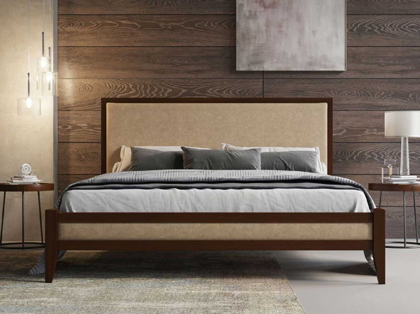 Красивое сочетание натурального блеска качественно обработанного и покрашенного дерева с матовой поверхностью замши придаст интерьеру вашей спальни изысканности и совершенно нового антуража, следуя всем современным трендам. Предусмотрено три цветовые вариации ткани на выбор (бежевый, коричневый, синий).